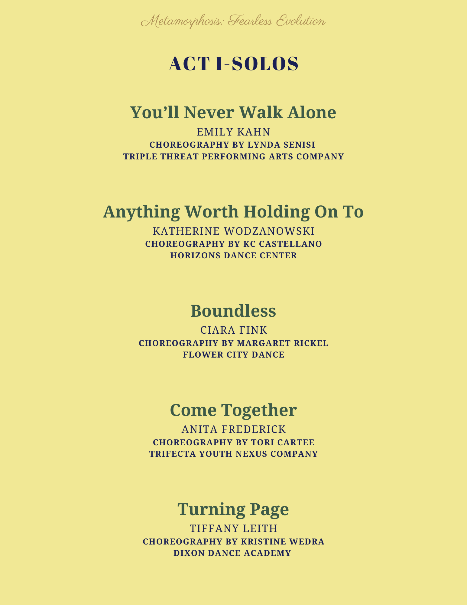 THE SHOWCASE (ACT I-Solos)8:30 PM Intermission